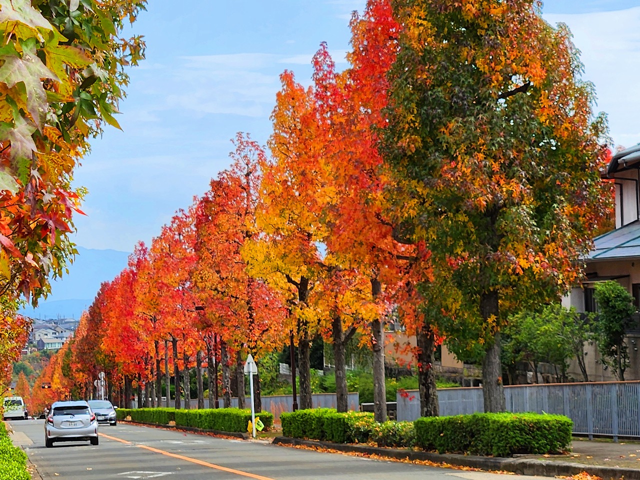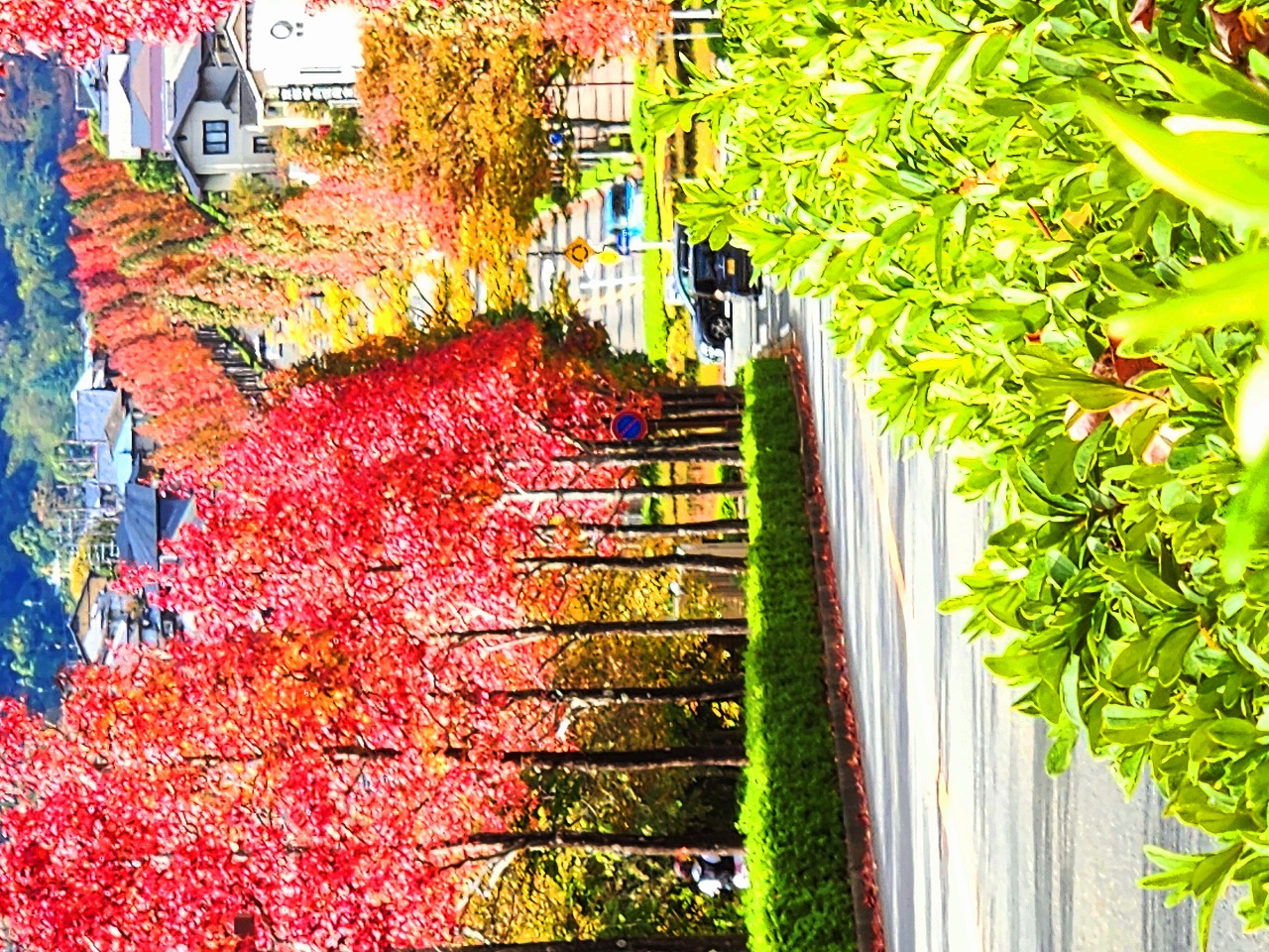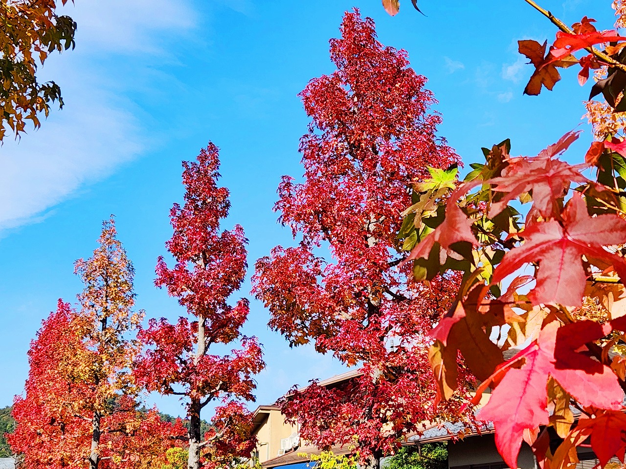 近隣の紅葉より,モミジバフウと云う種類もあって,十分な見頃になっていた