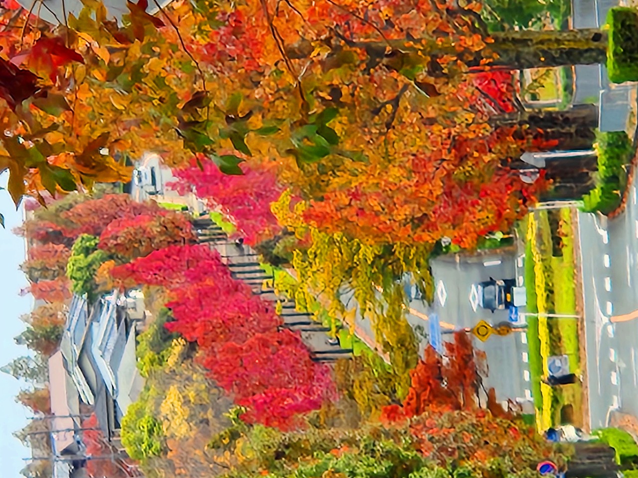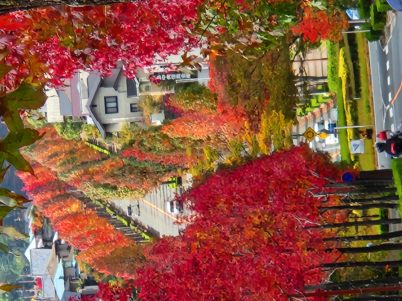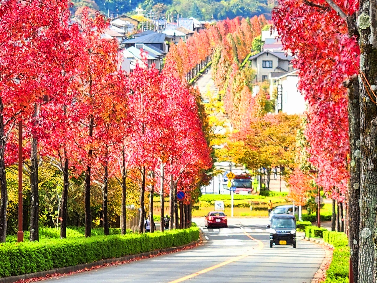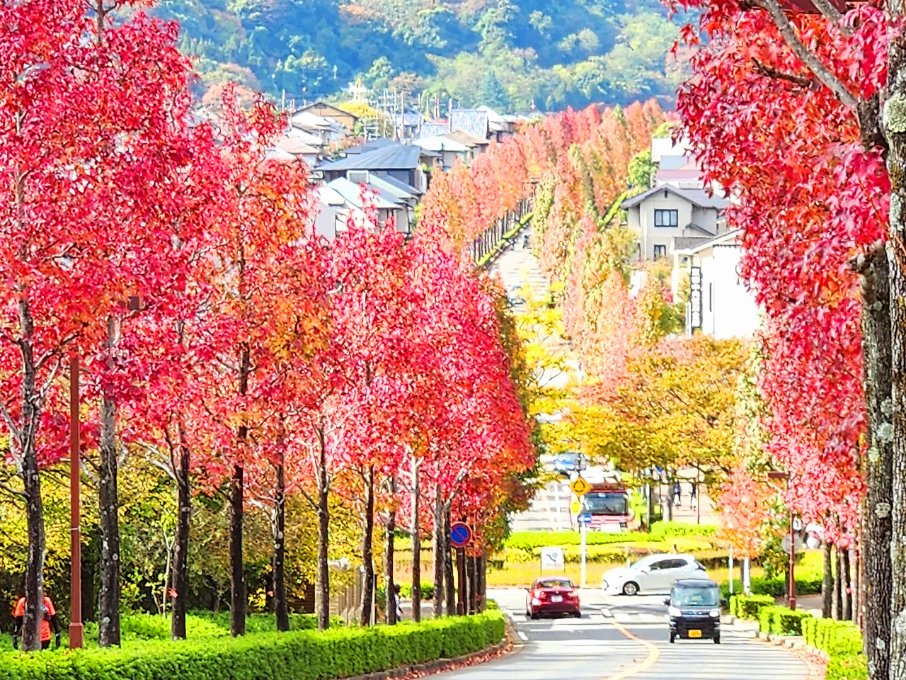 近隣の紅葉より,モミジバフウと云う種類もあって,十分な見頃になっていた