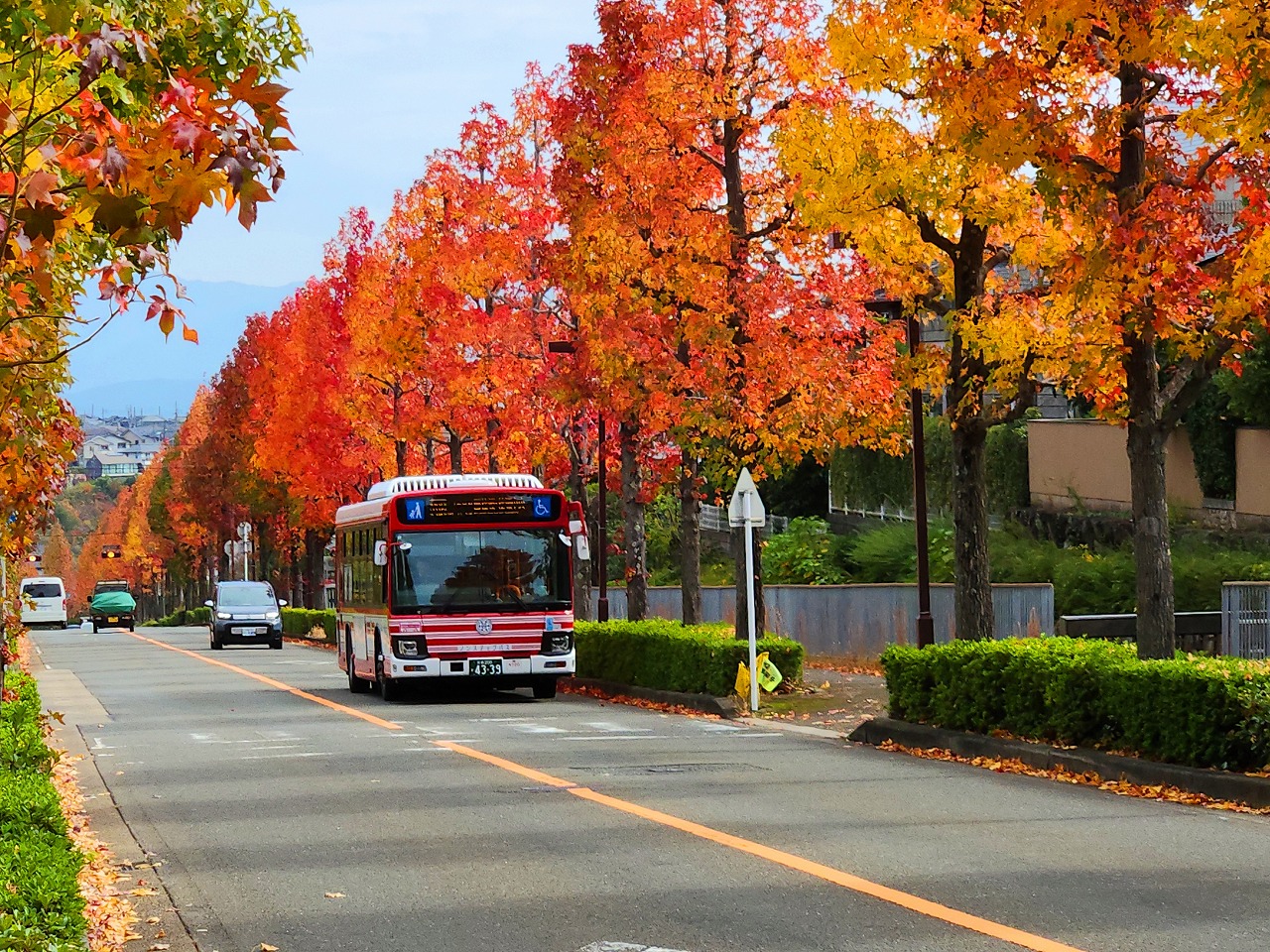 バスや自家用車はひっきりなしに通る