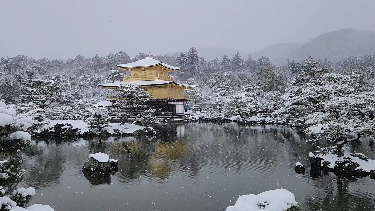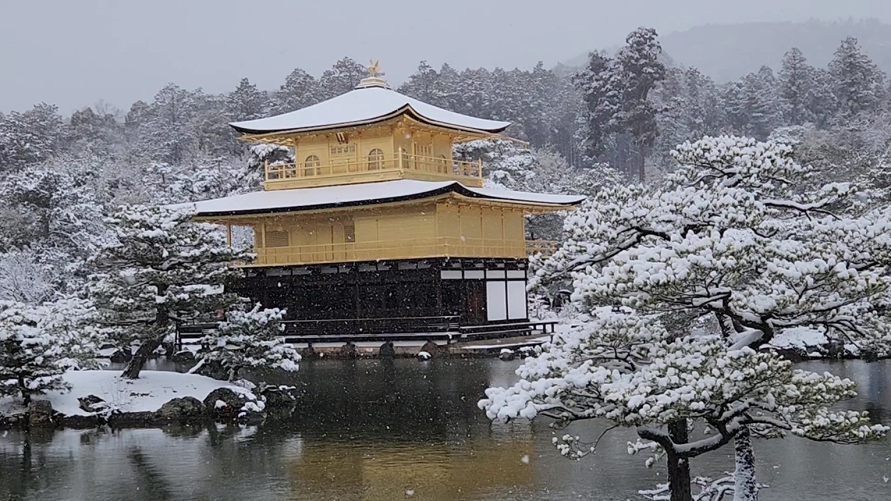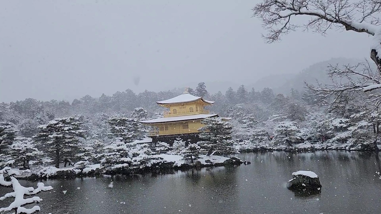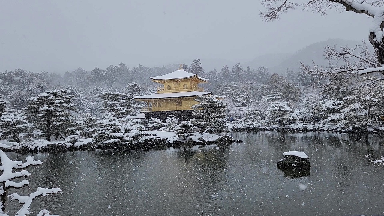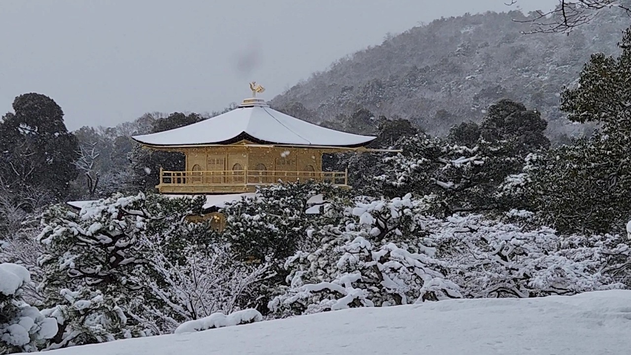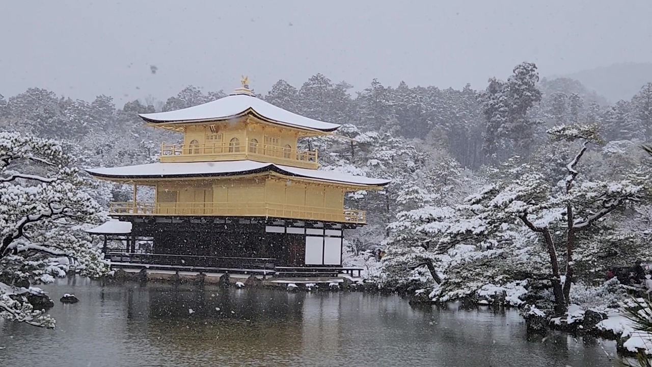動画4(11:14) 雪が降りしきる金閣寺舎利殿